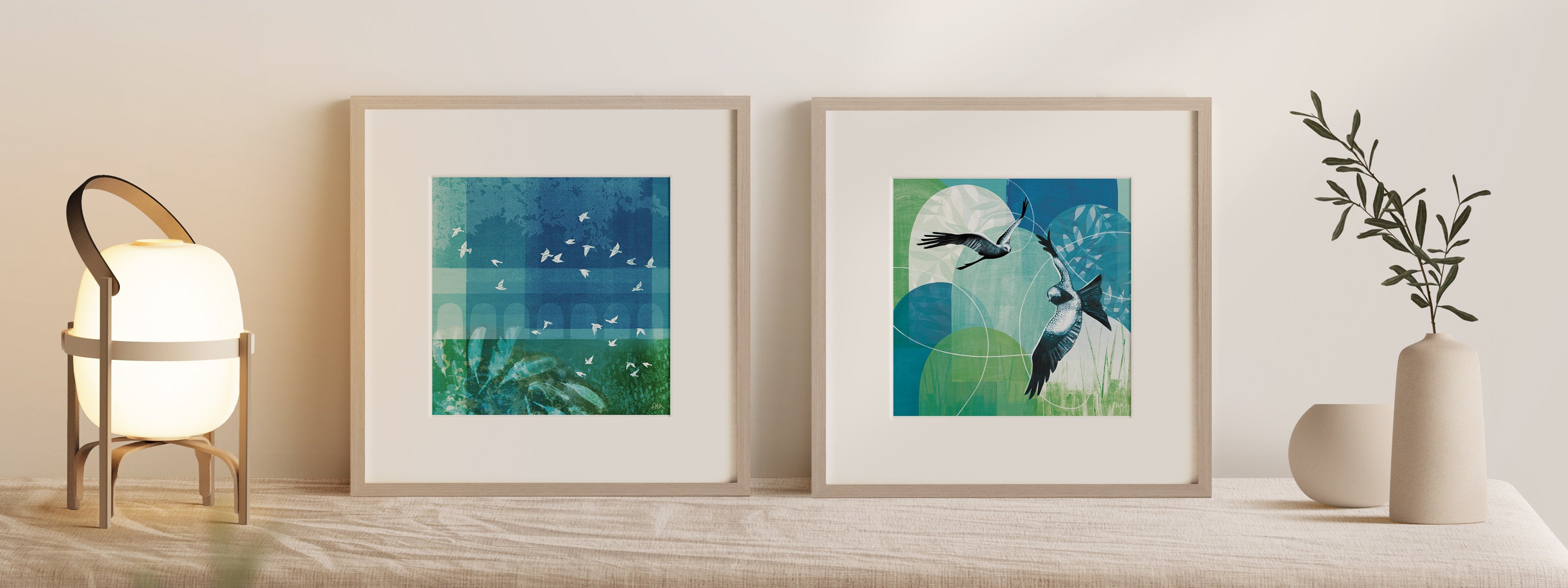 She creates fine art prints, cards and repeat patterns, using collagraph, monotype and multi-media techniques.
